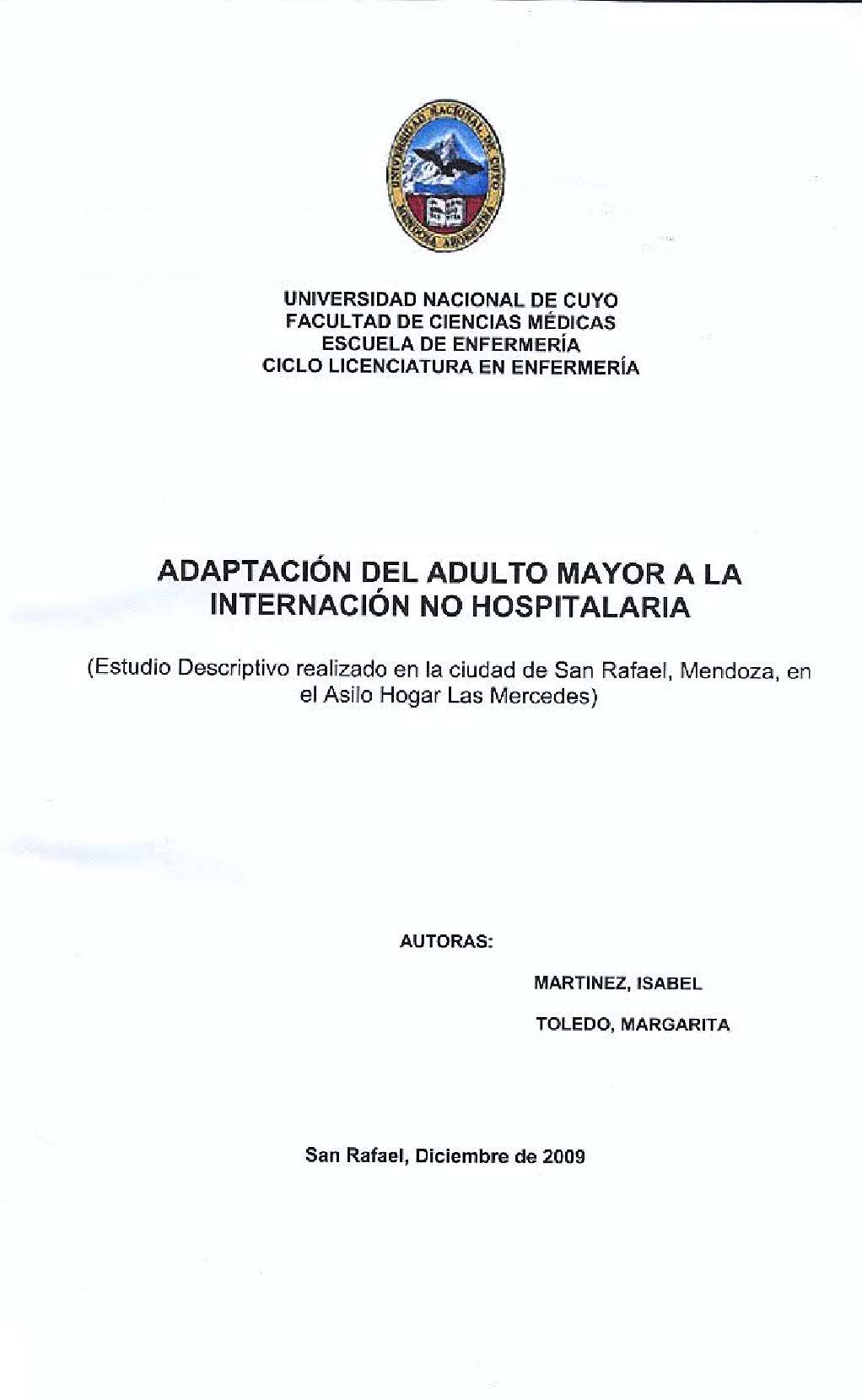 Universidad Nacional de Cuyo. Facultad de Ciencias Médicas. Escuela de Enfermería.