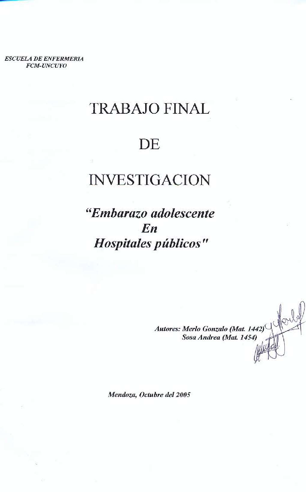 Merlo, Gonzalo; Sosa, Andrea. (2006). Embarazo adolescente en hospitales públicos: (Tesina de grado). Mendoza, Universidad Nacional de Cuyo. Facultad de Ciencias Médicas. Escuela de Enfermería..