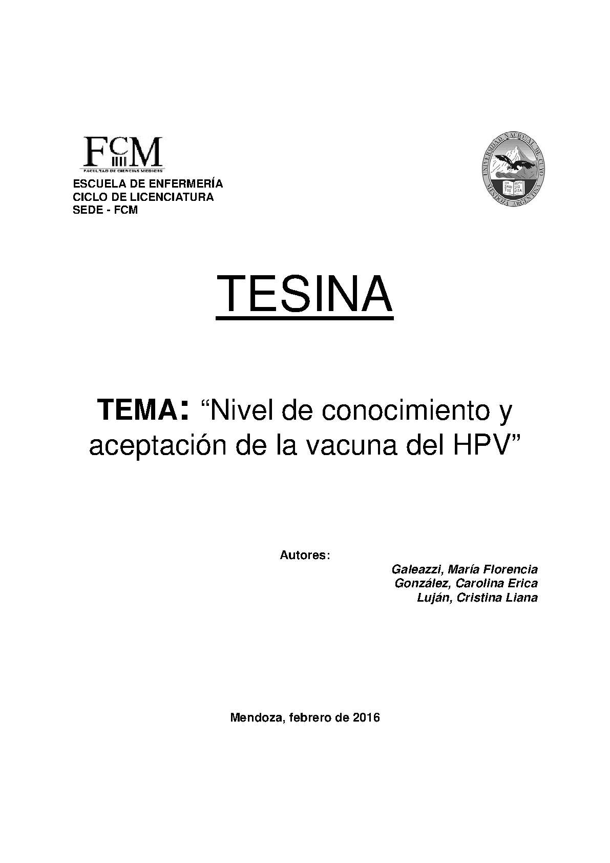 Nivel de conocimiento y aceptación de la vacuna del HPV