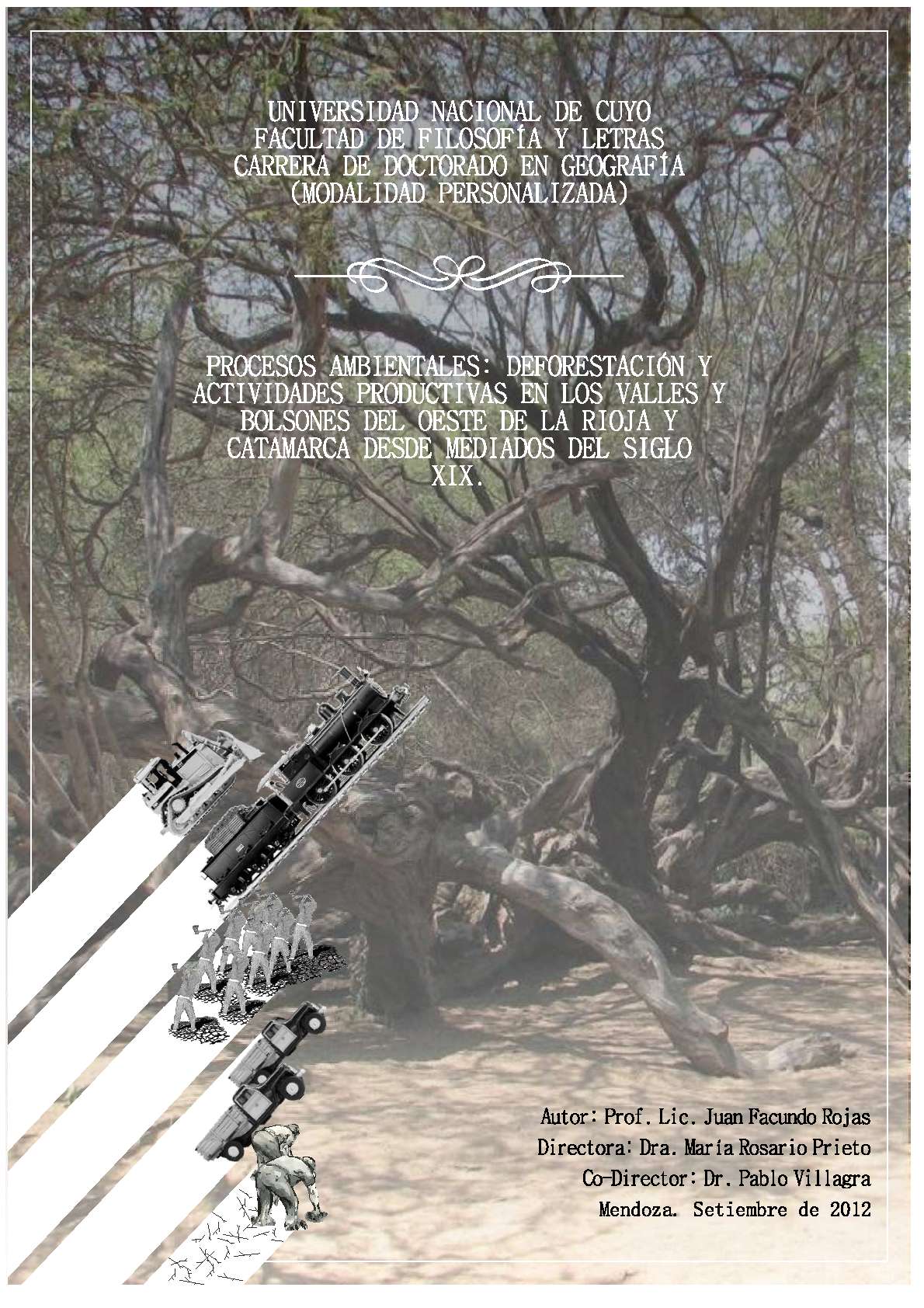 En esta tesis se describe y explica el proceso de deforestación del área ocupada por los bosques de algarrobo en el oeste de La Rioja y Catamarca, entre 1850 y la actualidad.