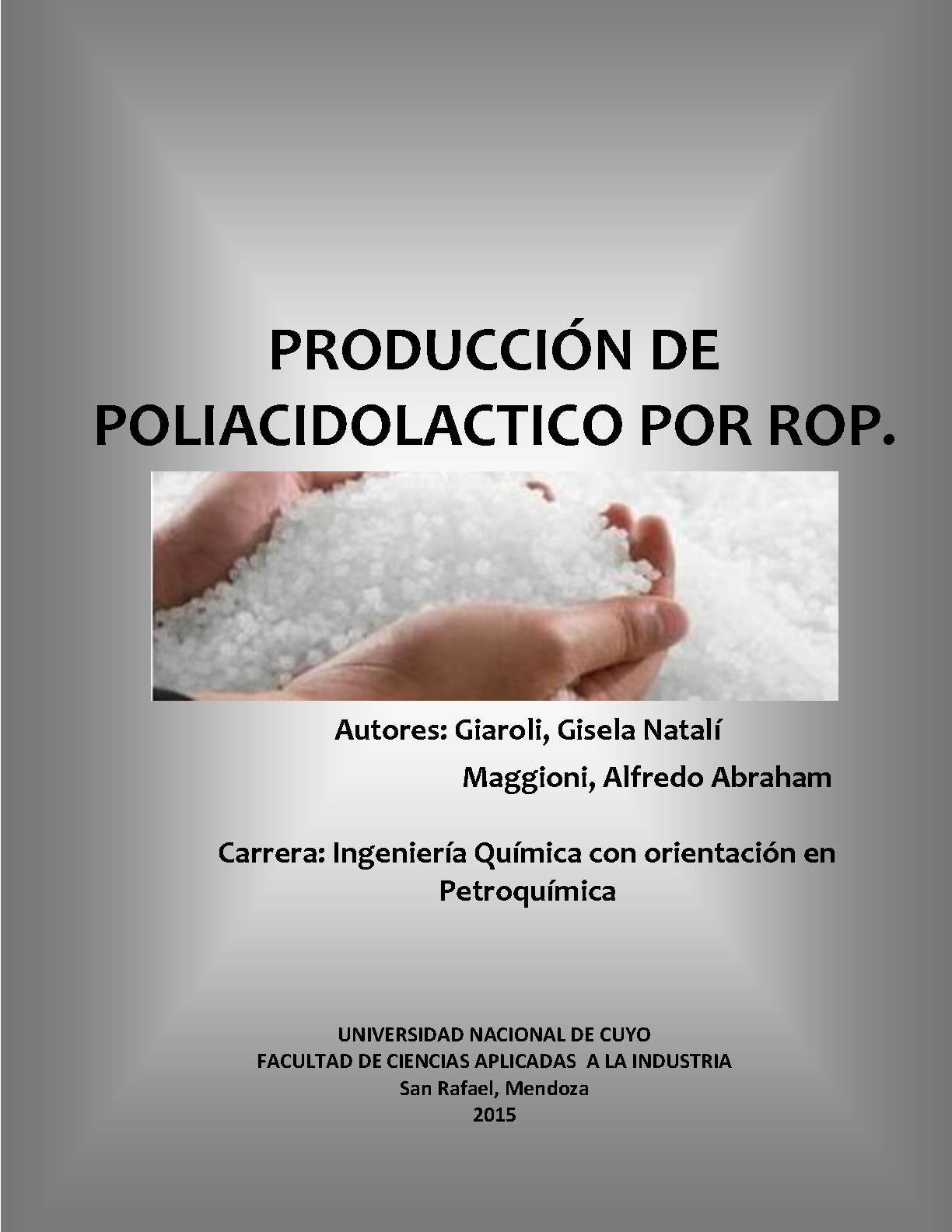 En el trabajo se exponen las características técnicas y económico-financieras de la instalación de una planta productiva de PLA (Poliácido láctico) por medio del método de Rompimiento de Anillo del monómero (lacturo). Entre las aplicaciones más importantes del petróleo encontramos la producción de los polímeros, pero dichos polímeros no son biodegradables y se producen a partir de un recurso no renovable. Como solución a estas problemáticas surgen los biopolímeros, los cuales se obtiene a partir de recursos renovables y son biodegradables. El ácido poliláctico (PLA) es uno de estos.La materia principal para la producción del PLA es el ácido láctico de elevada concentración, que puede ser producido a partir de la fermentación de la caña de azúcar o el almidón de maíz. Luego por medio de los procesos unitarios correspondientes se obtiene el PLA, el cual es un biopolímero compostable. Este material es comparable, en propiedades, a los polímeros commodities aunque los supera debido a su elevada degradación en poco tiempo, dejando residuos inocuos como dióxido de carbono, agua, y humus.