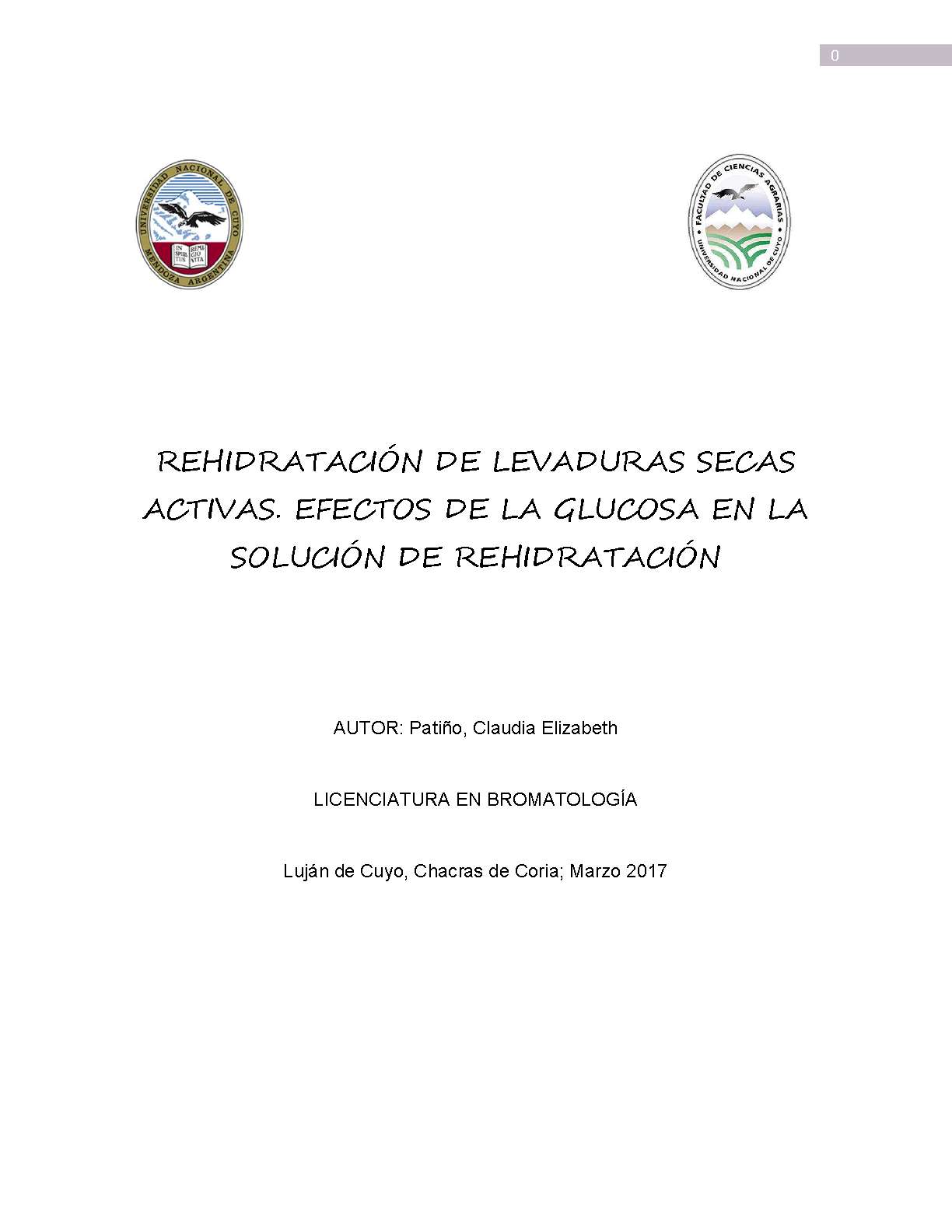 Patiño, Claudia Elizabeth. (2017). Rehidratación de levaduras secas activas: efecto de la glucosa en la solución de rehidratación (Tesina de grado). Mendoza, Universidad Nacional de Cuyo. Facultad de Ciencias Agrarias .