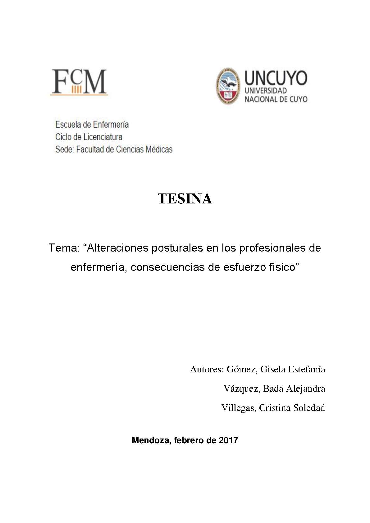 Universidad Nacional de Cuyo. Facultad de Ciencias Médicas. Escuela de Enfermería.