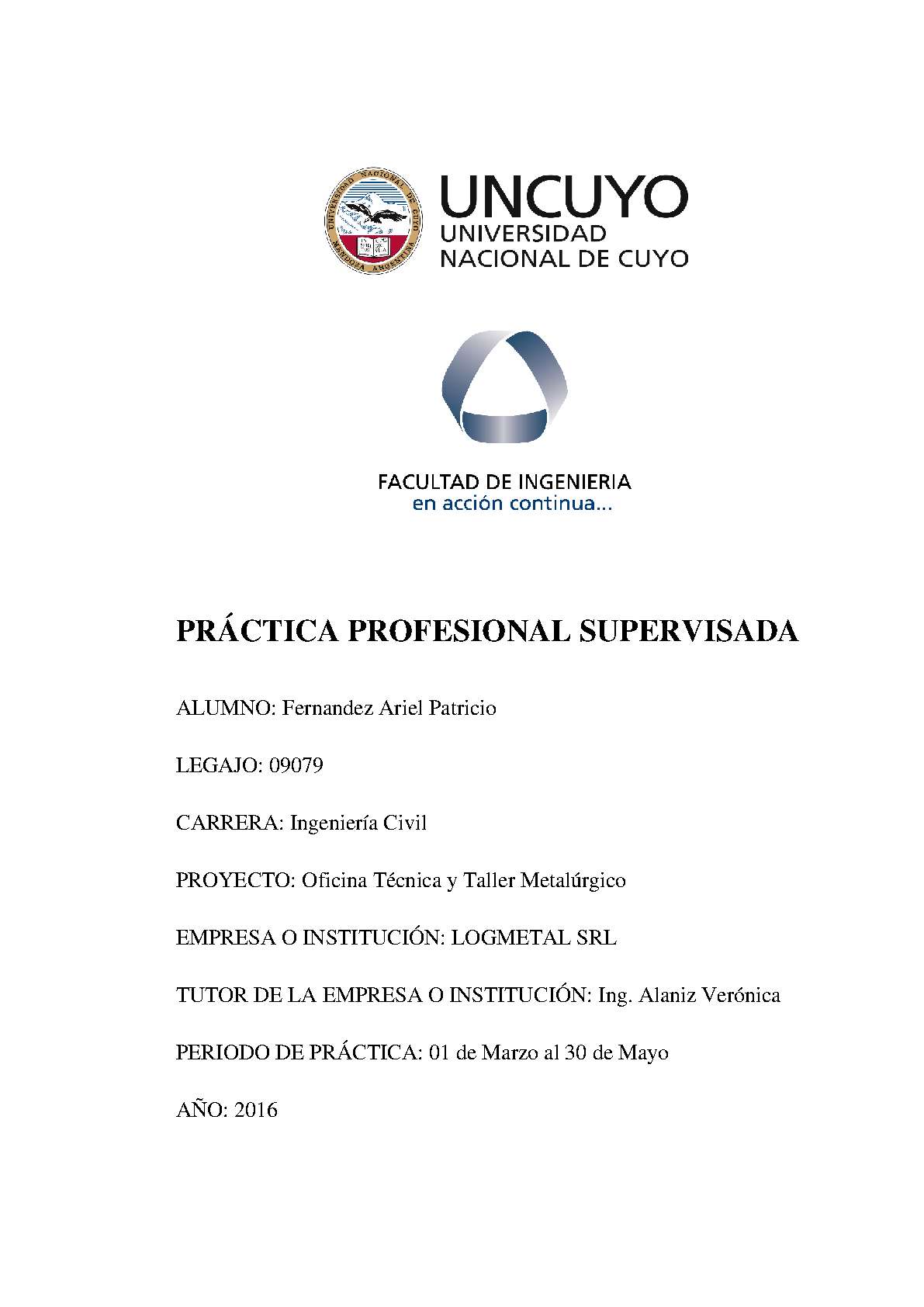 El contenido de este informe ofrece una descripción de todas las actividades realizadas durante el periodo de Práctica Profesional Supervisada correspondiente a la Carrera de Ingeniería Civil, durante los meses de marzo-mayo de 2016.