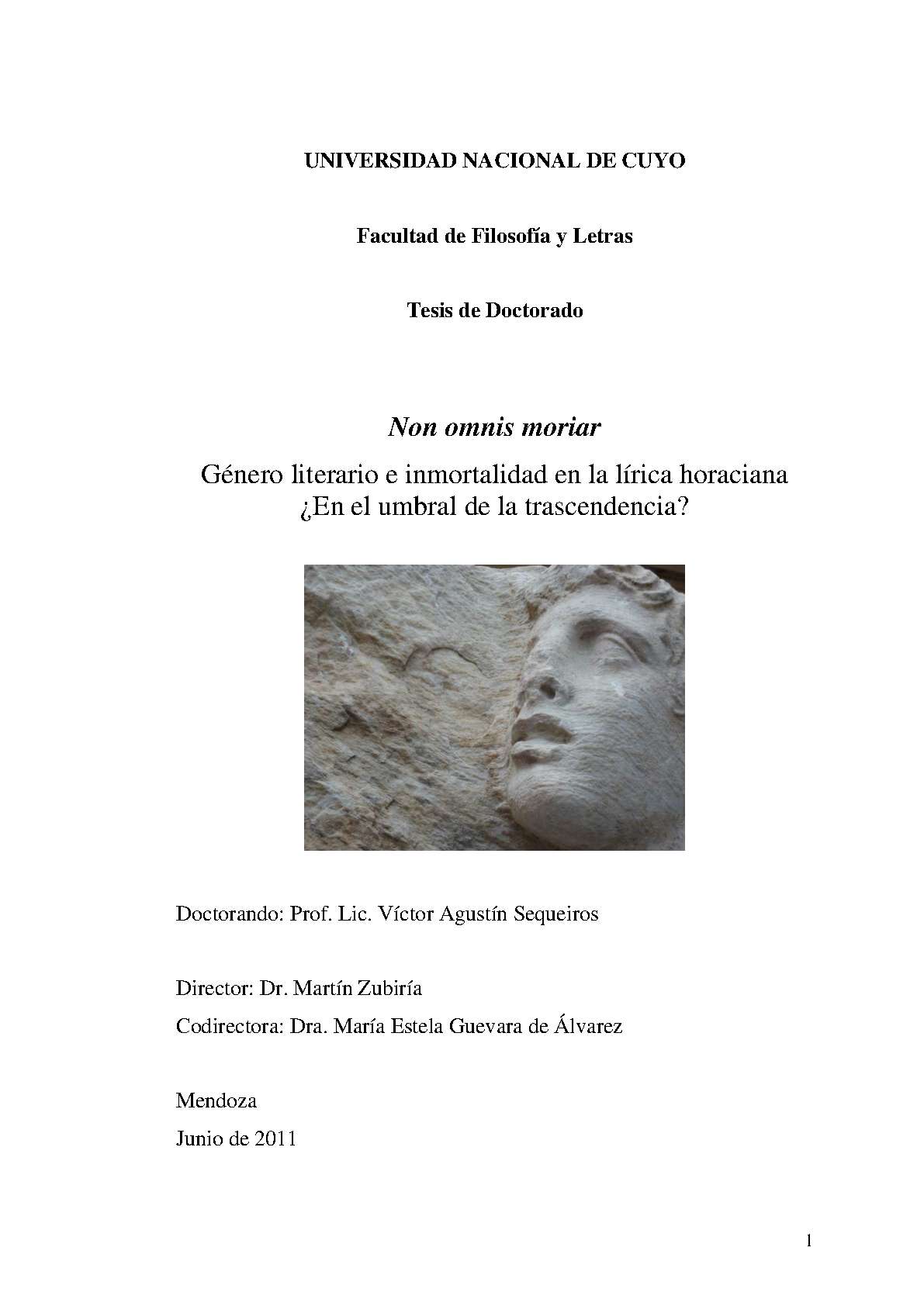 Sequeiros, Víctor Agustín. (2011). Non omnis moriar: género literario e inmortalidad en la lírica horaciana : ¿en el umbral de la trascendencia? (Tesis de Doctorado). Mendoza, Universidad Nacional de Cuyo. Facultad de Filosofía y Letras .