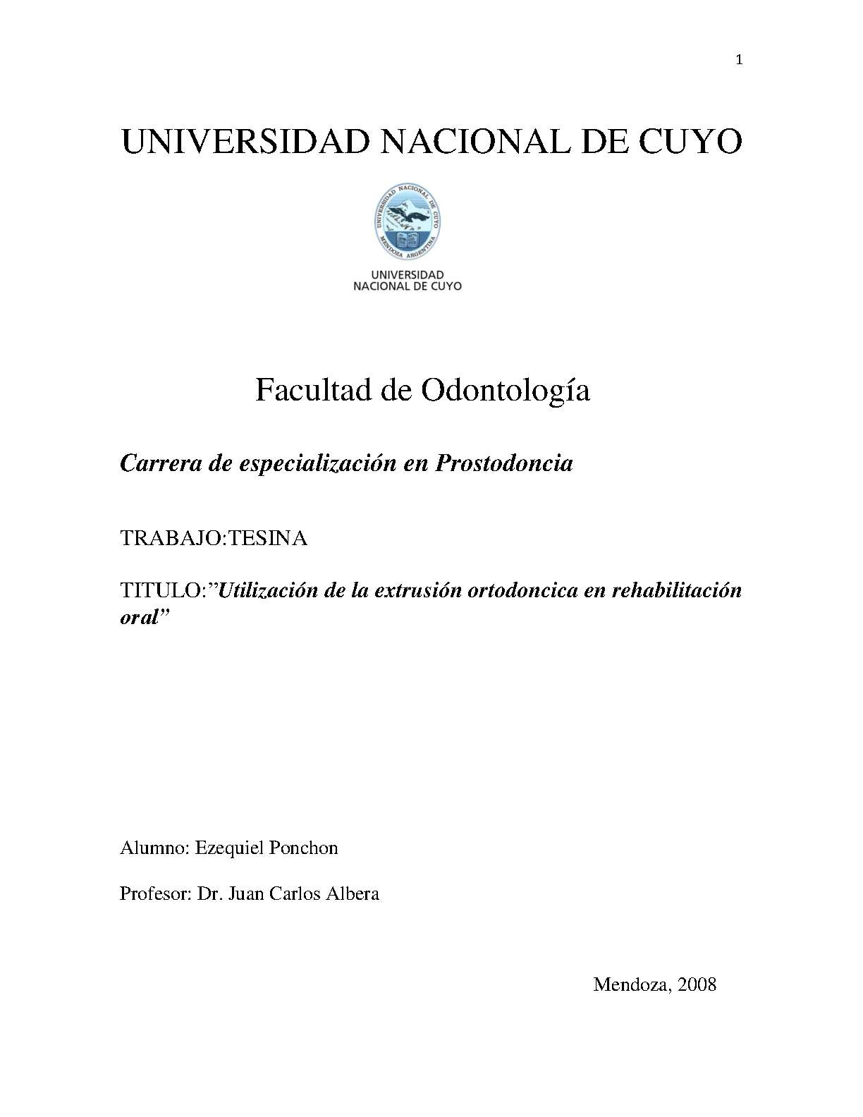 Ponchon, Ezequiel. (2008). Extrusión ortodóncica en rehabilitación oral: (Trabajo final de especialización). Mendoza, Universidad Nacional de Cuyo. Facultad de Odontología .