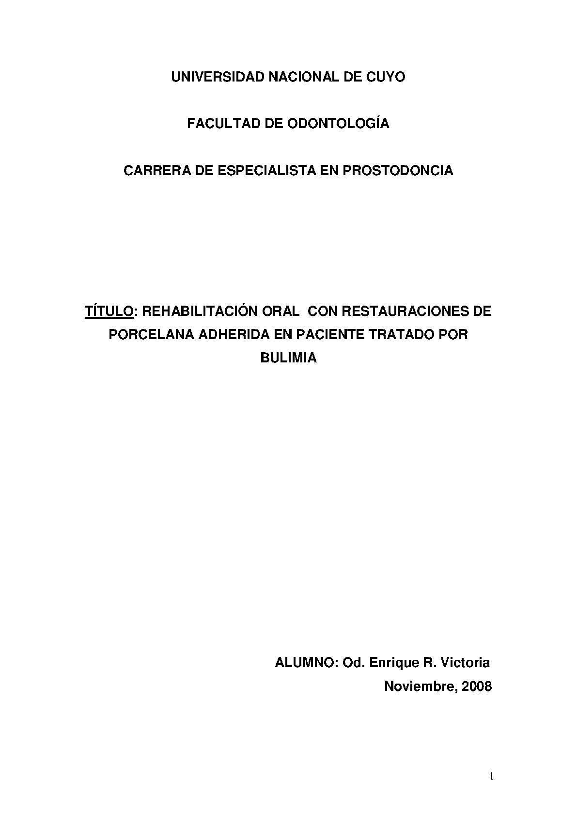 Victoria, Enrique R.. (2008). Rehabilitación oral con restauraciones de porcelana adherida en paciente tratado por bulimia: (Trabajo final de especialización). Mendoza, Universidad Nacional de Cuyo. Facultad de Odontología .