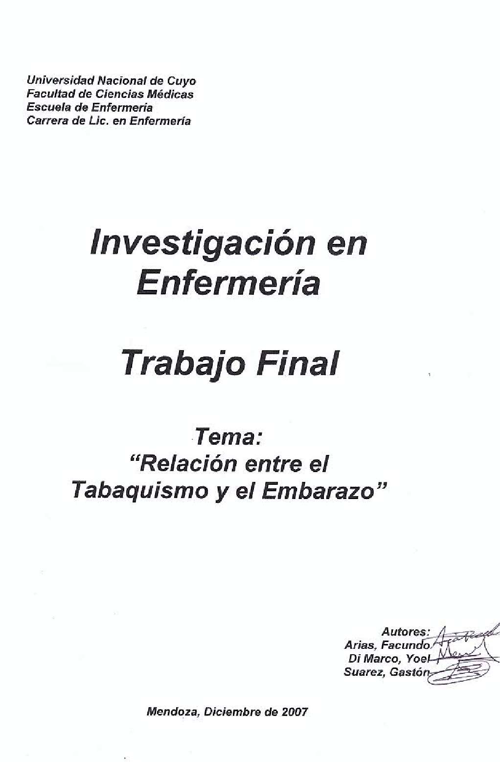 Arias, Facundo; Di Marco, Yoel; Suárez, Gastón. (2008). Relación entre el tabaquismo y el embarazo: (Tesina de grado). Mendoza, Universidad Nacional de Cuyo. Facultad de Ciencias Médicas. Escuela de Enfermería..