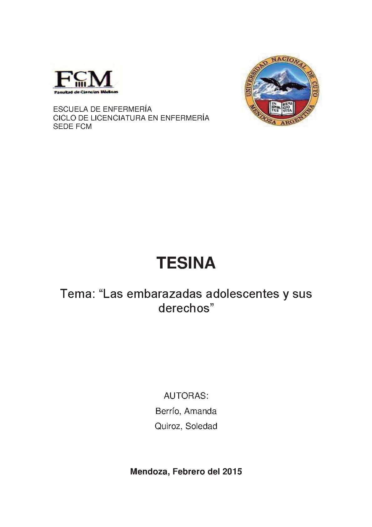 Berrío, Amanda; Quiroz, Soledad. (2015). Las embarazadas adolescentes y sus derechos: (Tesina de grado). Mendoza, Universidad Nacional de Cuyo. Facultad de Ciencias Médicas. Escuela de Enfermería..