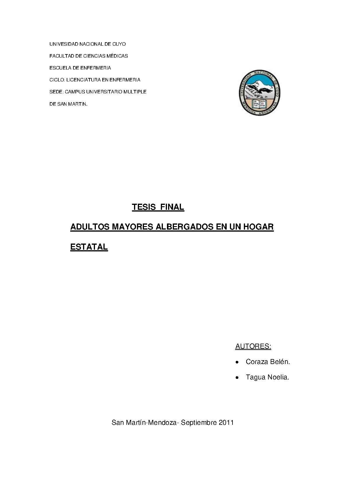 Universidad Nacional de Cuyo. Facultad de Ciencias Médicas. Escuela de Enfermería.