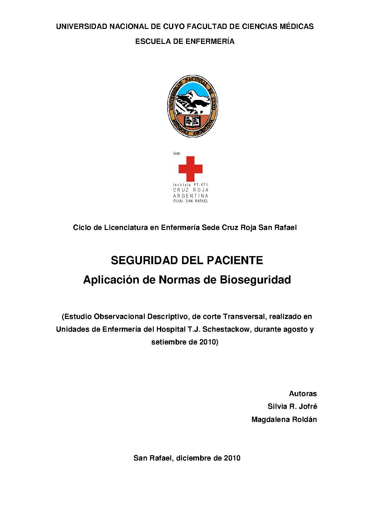 Universidad Nacional de Cuyo. Facultad de Ciencias Médicas. Escuela de Enfermería.