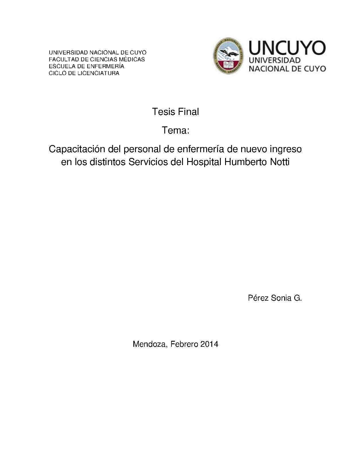 Pérez, Sonia G.. (2014). Capacitación del personal de enfermería de nuevo ingreso en los distintos servicios del Hospital Humberto Notti : (Tesina de grado). Mendoza, Universidad Nacional de Cuyo. Facultad de Ciencias Médicas. Escuela de Enfermería..