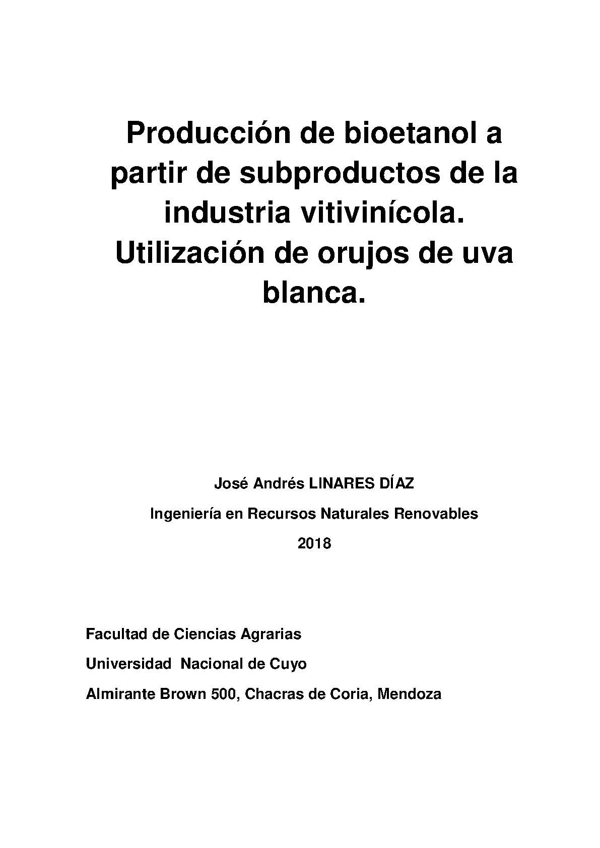 El objetivo de este trabajo fue generar bioetanol a partir de orujos de uva blanca, aplicando tratamientos térmicos, químicos y enzimáticos para degradar los polisacáridos existentes e incrementar los rendimientos de etanol del proceso.