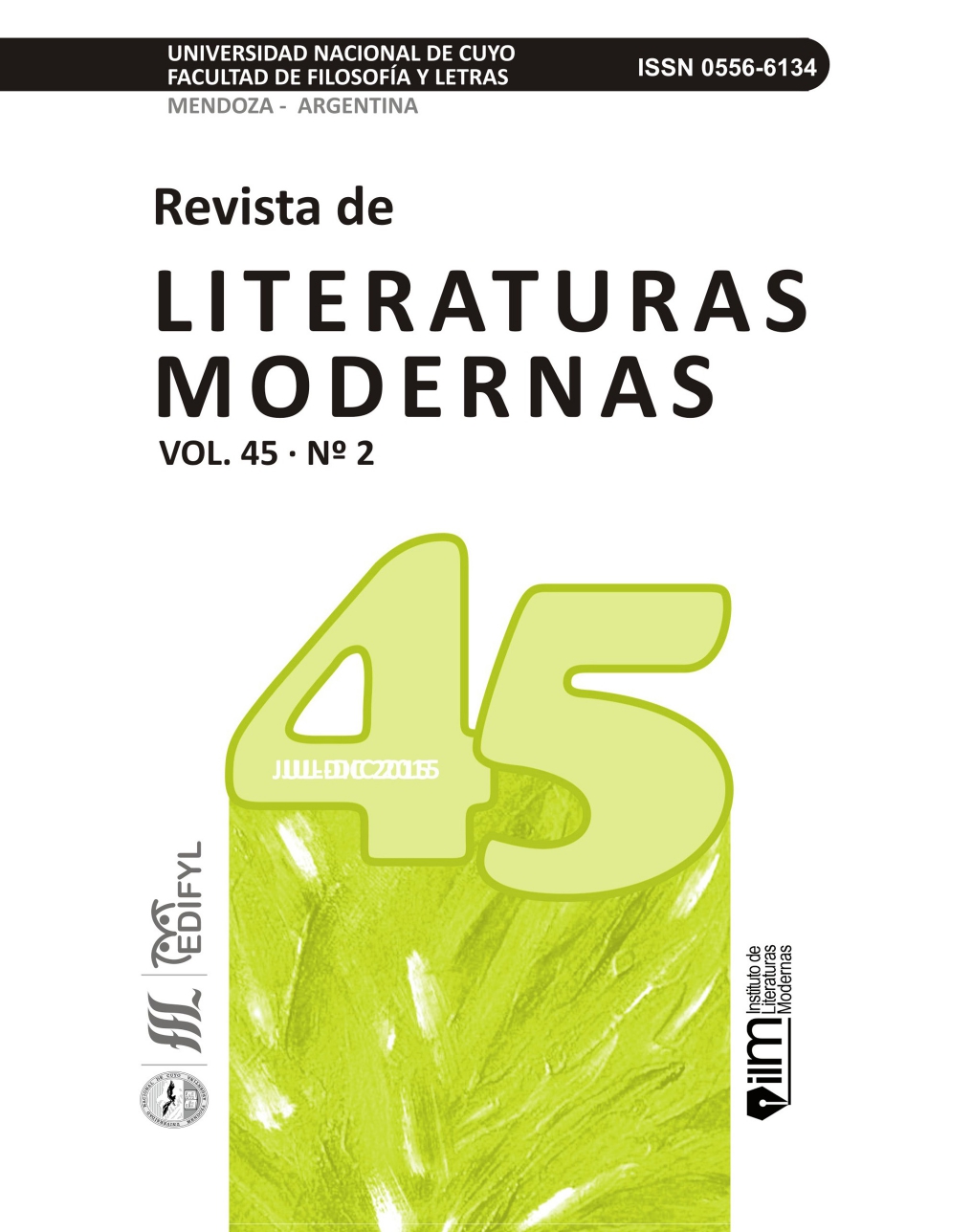 Revista de Literaturas Modernas (ReLiMo) is the official publication of the Institute of Modern Literatures at the Faculty of Philosophy and Letters, Cuyo National University (Mendoza, Argentina). It aims at the academic-scientific spreading of literary research, focused both on theoreticalcritical and methodological issues related to the specificity of its object, as well as to the inter-relation with other disciplines. In addition, it includes interviews, relevant documents, and book reviews. Founded in 1956, the journal was printed annually until 2013, when it started appeaning twice a year. It may also be accessed through the Digital Library at Cuyo National Universitys webpage (www.bdigital.uncu.edu.ar). Our Journal belongs to Latindex catalog.