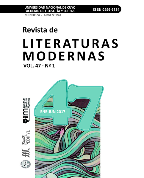 Revista de Literaturas Modernas (ReLiMo) is the official publication of the Institute of Modern Literatures at the Faculty of Philosophy and Letters, Cuyo National University (Mendoza, Argentina). It aims at the academic-scientific spreading of literary research, focused both on theoretical-critical and methodological issues related to the specificity of its object, as well as to the inter-relation with other disciplines. In addition, it includes interviews, relevant documents, and book reviews. Founded in 1956, the journal was printed annually until 2013, when it started appeaning twice a year. It may also be accessed through the Digital Library at Cuyo National Universitys webpage (www.bdigital.uncu.edu.ar). Our Journal belongs to Latindex catalog.