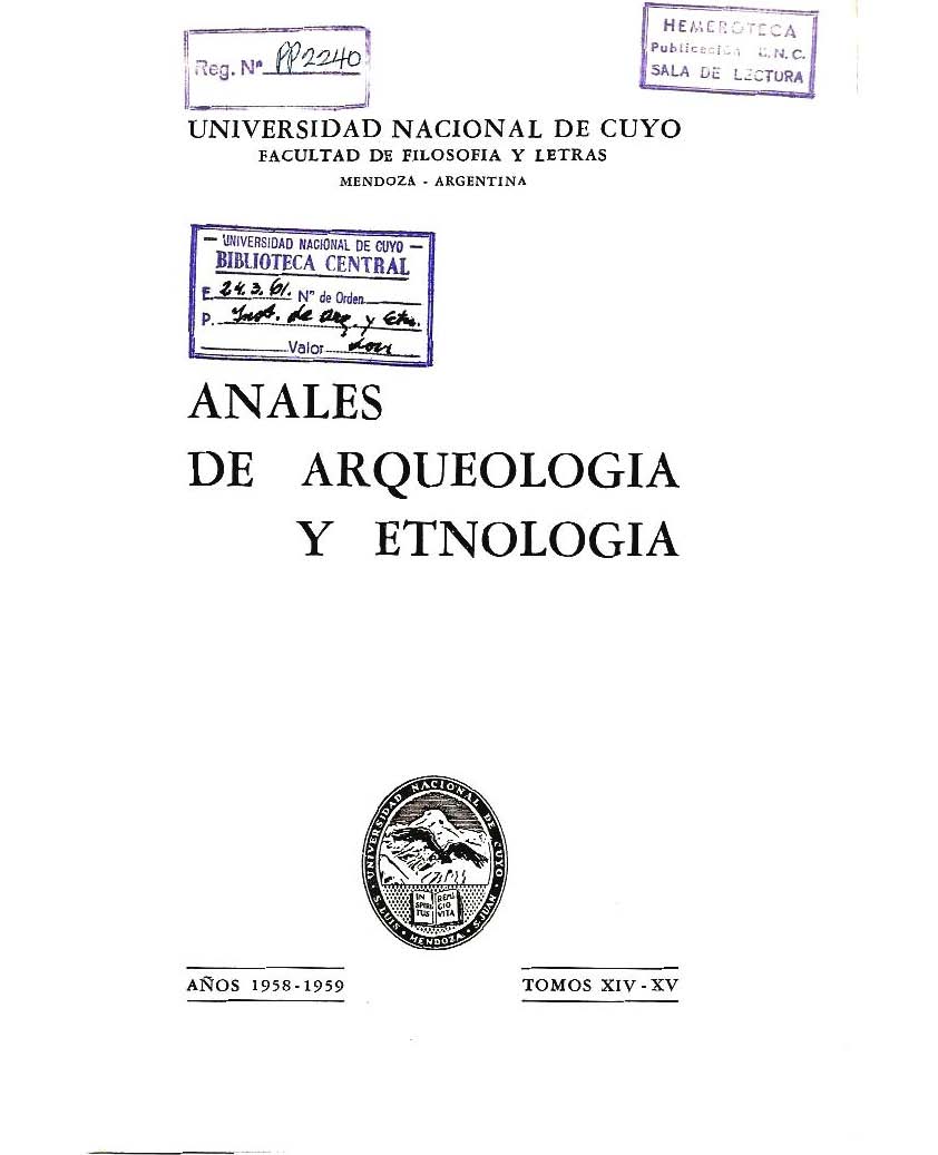 Institución Editora: Universidad Nacional de Cuyo. Facultad de Filosofía y Letras. Instituto de Arqueología y Etnología