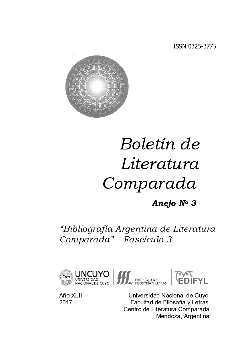 The Boletín de Literatura Comparada (Comparative Literature Bulletin) has been published continuously since 1976, subsidized by the Department of Science, Technology, and Graduate Studies of Universidad Nacional de Cuyo. At the beginning, its main objective was to publish the research conducted by the members of the Comparative Literature Center (CLC) of the College of Humanities of the Universidad Nacional de Cuyo. It has also published congress minutes of the Argentine Association of Comparative Literature (AALC) and colloquies in this field. Currently, it is a peer reviewed journal open to the publication of original research in the field of comparative literature by national and international specialists. It is indexed in the Latindex Catalog, Dialnet, and REBIUN, and it has been incorporated to the Núcleo Básico de Revistas Científicas Argentinas. Issues 26–27 (2001–2002) and 36 (2011) feature general tables of contents for the journal. It can be acquired through exchange and purchase.