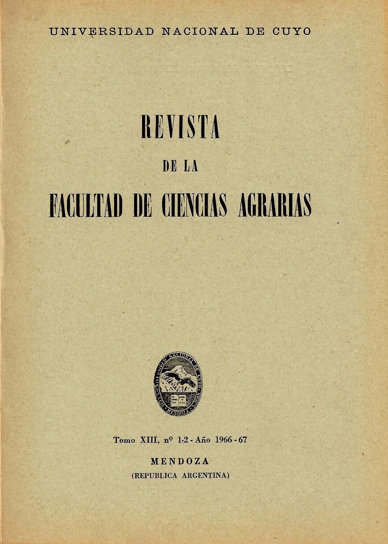 Institución Editora: Universidad Nacional de Cuyo. Facultad de Ciencias Agrarias