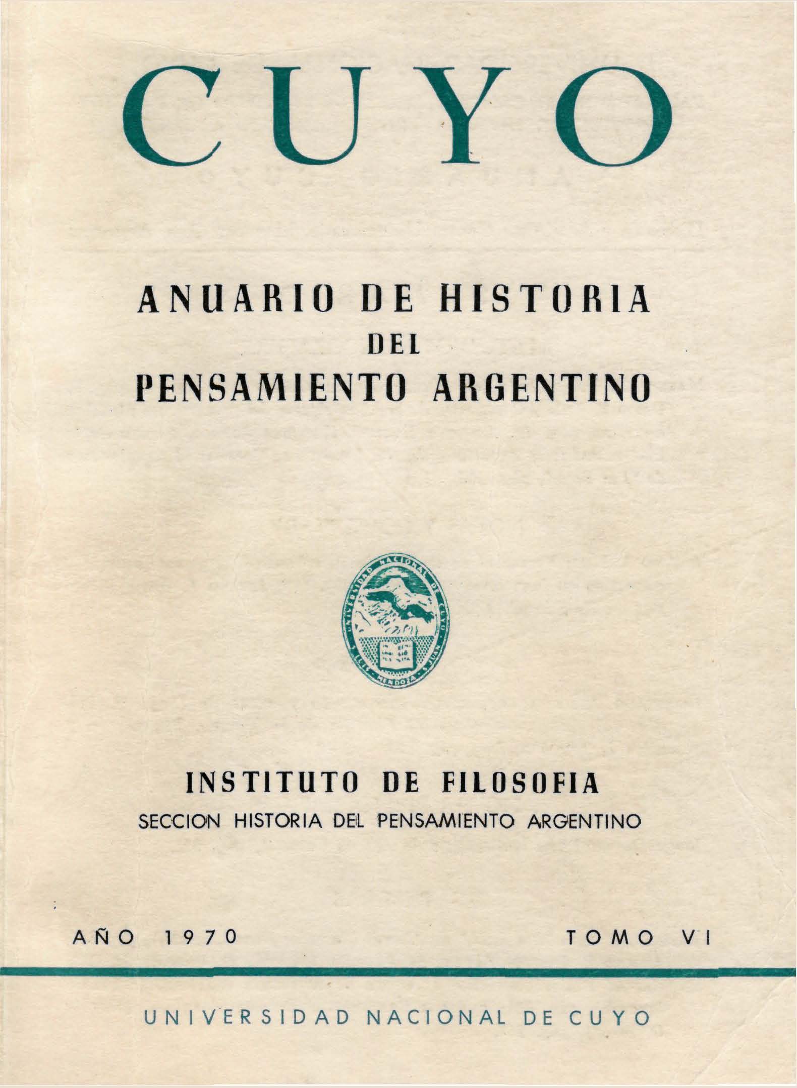 CUYO is a yearly publication of the Institute of Argentine and American Philosophy (the American Continent as a whole) of the Faculty of Philosophy and Literature of Cuyo University (Mendoza, Argentina). This publication contains research papers on Philosophy, History of Argentine and American Philosophy, History of American Ideas, and related disciplines. In its “Texts” section, it recovers for publication unpublished writings and ancient works and documents. Since 1965, CUYO has provided a space for the exchange of opinions and critical analysis with a scientific note, addressed not only to the specialized reader but also to the general public. This publication is included in the Handbook of Latin American Studies of the Library of Congress, in the Directory of Social Sciences and in the Latindex. Every opinion expressed here by the authors is their own responsibility.