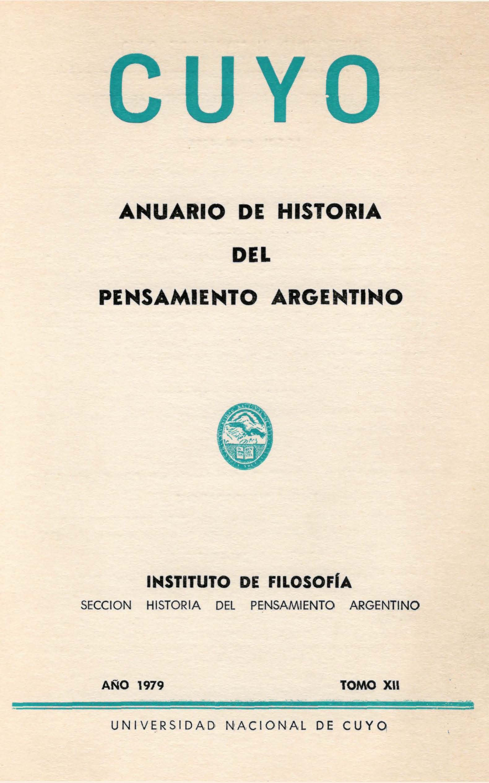 CUYO es una publicación anual del Instituto de Filosofía Argentina y Americana de la Facultad de Filosofía y Letras de la Universidad Nacional de Cuyo (Mendoza, Argentina). Difunde trabajos de investigación sobre Filosofía, Historia de la Filosofía Argentina y Americana, Historia de las Ideas Americanas y disciplinas afines. En su sección “Textos” rescata inéditos, escritos antiguos y documentación. Desde 1965 es un espacio de diálogo y análisis crítico con calidad científica y rigor académico, dirigida a un lector especializado, pero también a un público en general. Esta revista está incluida en el Handbook of Latin American Studies de la Library of Congress, EEUU, en el Directory of Social Sciences y en el Latindex. Las opiniones expresadas por los autores son de su exclusiva responsabilidad. CUYO is a yearly publication of the Institute of Argentine and American Philosophy (the American Continent as a whole) of the Faculty of Philosophy and Literature of Cuyo University (Mendoza, Argentina). This publication contains research papers on Philosophy, History of Argentine and American Philosophy, History of American Ideas, and related disciplines. In its “Texts” section, it recovers for publication unpublished writings and ancient works and documents. Since 1965, CUYO has provided a space for the exchange of opinions and critical analysis with a scientific note, addressed not only to the specialized reader but also to the general public. This publication is included in the Handbook of Latin American Studies of the Library of Congress, in the Directory of Social Sciences and in the Latindex. Every opinion expressed here by the authors is their own responsibility.