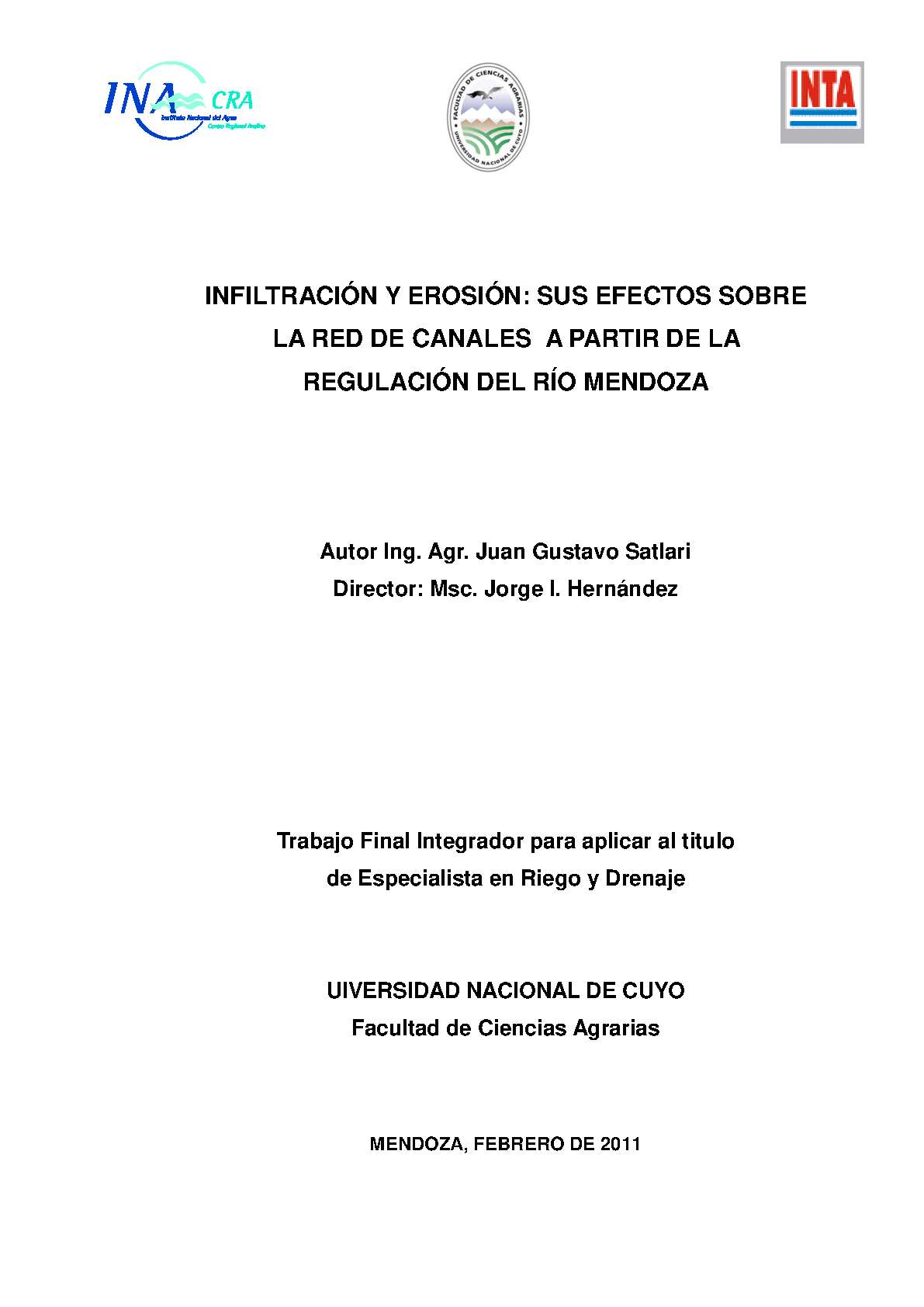 sus efectos sobre la red de canales a partir de la regulación del Río Mendoza
