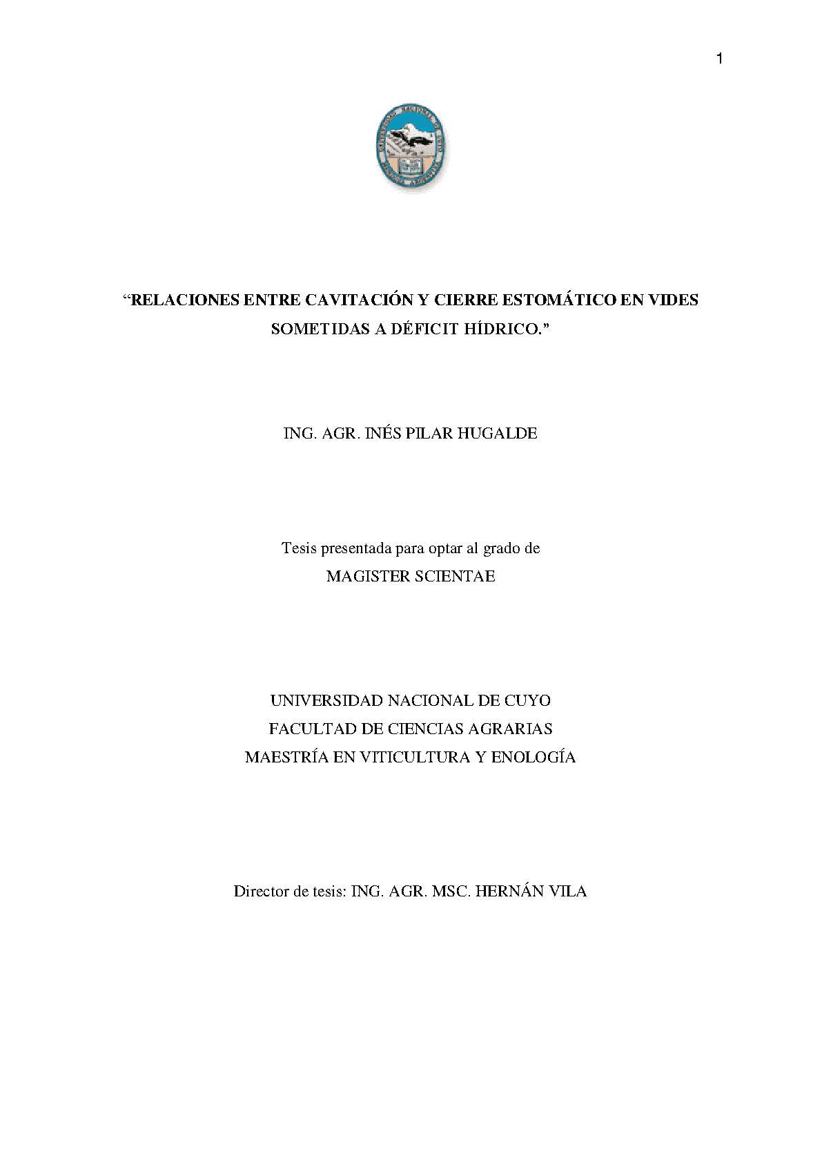 En este trabajo se estudió, el ajuste estomático como mecanismo para evitar la cavitación en cuatro variedades contrastantes de vid (Grenache, Syrah, Malbec y Chardonnay). Se hipotetizó que las vides sometidas a déficit hídrico disminuyen gs para evitar sufrir cavitaciones catastróficas y que algunas variedades de vid, cuando crecen bajo restricción hídrica, se aclimatan mejor desarrollando un ajuste estomático más preciso, ó un sistema conductor menos vulnerable a cavitar, o ambas.